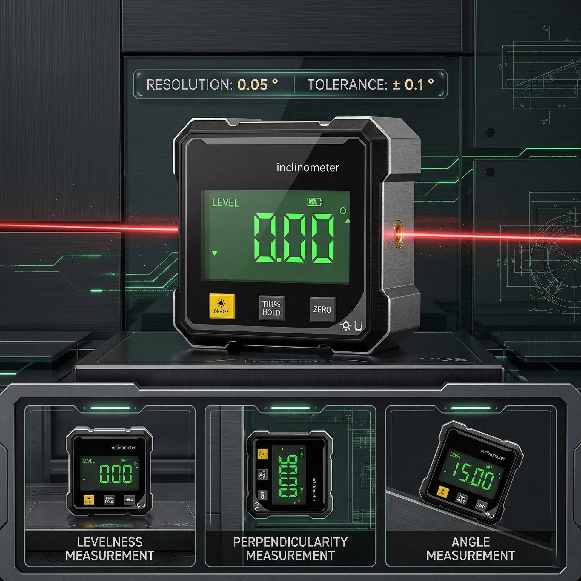 The large illuminated display presents angle and slope readings with exceptional clarity. Even in dim workshops or confined spaces, the bright screen keeps measurements instantly visible so you can work with confidence and maintain precise alignment.